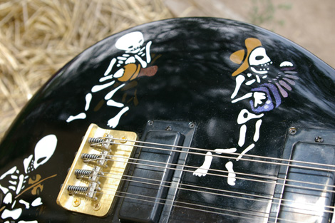 Finish: Catalyzed urethane with custom ZoukFest Calaveras Band in chameleon paints